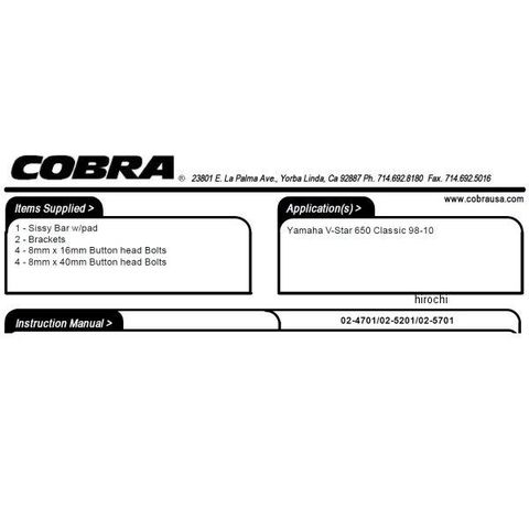 コブラ COBRA シーシーバー 98年以降 ドラッグスター XVS650A スタンダード