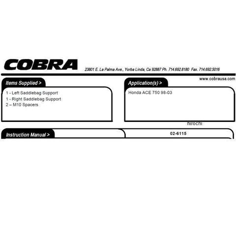 コブラ COBRA サドルバッグサポート 98年-03年 シャドウ VT750C
