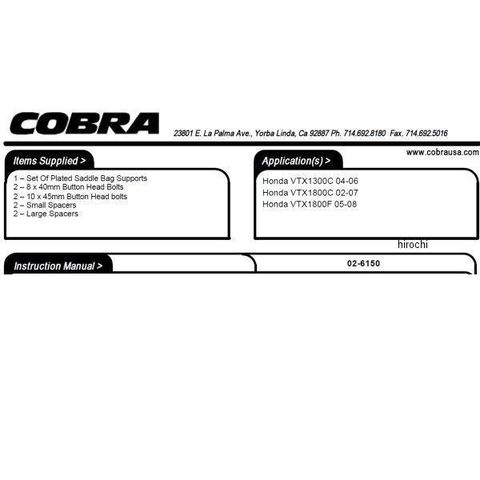 コブラ COBRA サドルバッグサポート 02年-07年 VTX1800C、VTX1800F、VTX1300C
