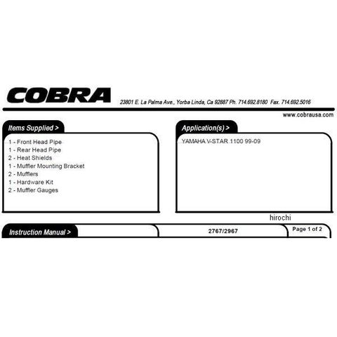 コブラ COBRA フルエキゾースト ストレートカット ローボーイ ショットガン 99年-09年 ドラッグスター XVS1100