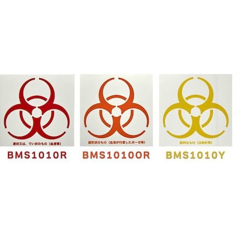 ・注射針、メスなどの分別表示に。・医療機関・研究室など各種施設等における感染性廃棄物の分別表示に。・特定病原体等を取扱う施設や輸送容器等に。