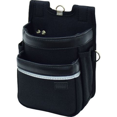 ・摩耗や釘の突き抜けに強い高密度1680デニール100%ナイロンを使用しています。・反射テープ付きで視認性バツグンです。・ポケットの縁に反しが無く指を痛めない仕様です。・コンパクトサイズのポケット2段タイプです。・深いU字カットベルト通しでハーネスの上からも装着可能です。・釘が突き抜けないメッシュ式水抜き穴です。