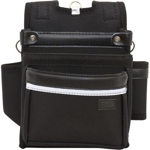 ・摩耗や釘の突き抜けに強い高密度1680デニール100%ナイロンを使用しています。・反射テープ付きで視認性バツグンです。・ポケットの縁に反しが無く指を痛めない仕様です。・使いやすい標準サイズのポケット3段タイプです。・深いU字カットベルト通しでハーネスの上からも装着可能です。・釘が突き抜けないメッシュ式水抜き穴です。・独自の補強皮革技術で開口部を広く保持しています。