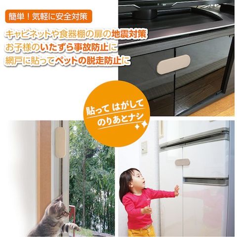 ・キャビネットを開け閉めしてしまうお子様を思わぬ事故からお守りします。・のり残りのしにくい特殊粘着加工を施しています。