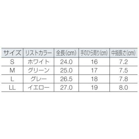 ・色:ホワイト・サイズ:S・全長(cm):24.0・手のひら周り(cm):16・中指長さ(cm):7.2・厚さ(mm):0.2・リストカラー:ホワイト