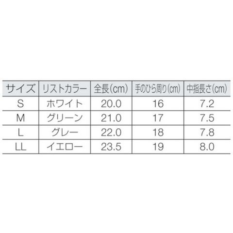 ・色:ホワイト・サイズ:L・全長(cm):22.0・手のひら周り(cm):18・中指長さ(cm):7.8・厚さ(mm):0.2・リストカラー:グレー