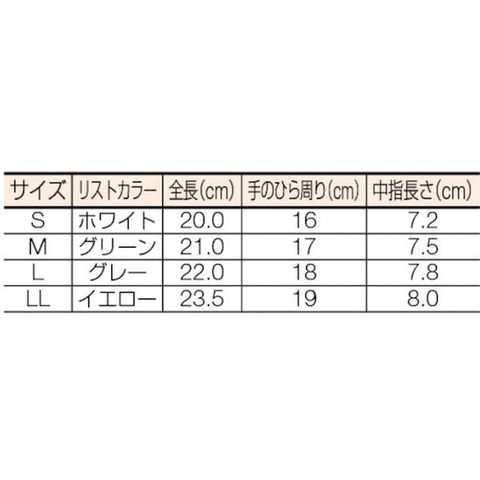 ・色:ホワイト・サイズ:M・全長(cm):21.0・手のひら周り(cm):17・中指長さ(cm):7.5・厚さ(mm):0.2・リストカラー:グリーン