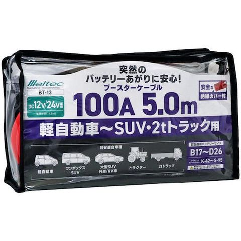 BT13 大自工業(株) メルテック ブースターケーブル DC12V/24V・100A 5m