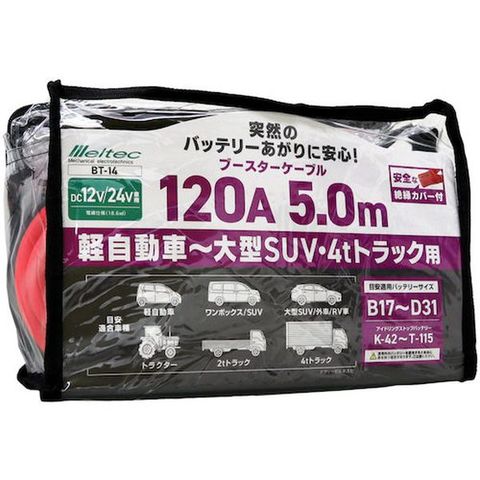 BT14 大自工業(株) メルテック ブースターケーブル DC12V/24V・120A 5m