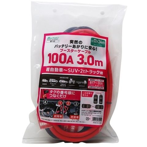 BT22 大自工業(株) メルテック ブースターケーブル DC12V/24V・100A 3m