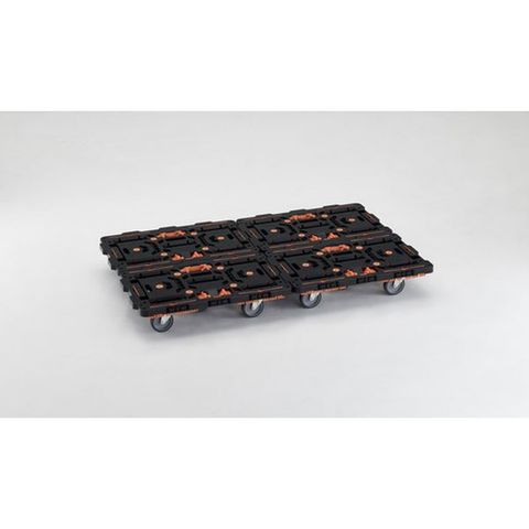 まとめ買い 連結式樹脂製平台車 ビートル 700X450 自在5輪 コボレ止めセット付 4台セット