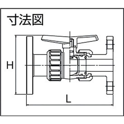 塩ビ製ボールバルブ フランジ式 本体PVC OリングEPDM 50 長さ234mm×高さ185mm