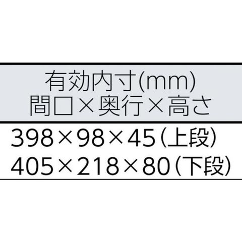 ・色:シルバー・外形寸法(mm)間口:433・外形寸法(mm)奥行:220・外形寸法(mm)高さ:160・有効内寸(mm)間口:398・有効内寸(mm)奥行:98・有効内寸(mm)高さ:45(上段)、405・南京錠(別売):取付可(φ5mm)