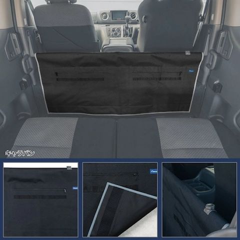 荷室からの冷気の侵入や冷暖房効率をアップさせ、さらにモールやファスナーポケットにより車内収納力を上げることができる。 バンライフを快適に過ごすために考えられたMADE IN JAPAN製の高品質パーテーション。
