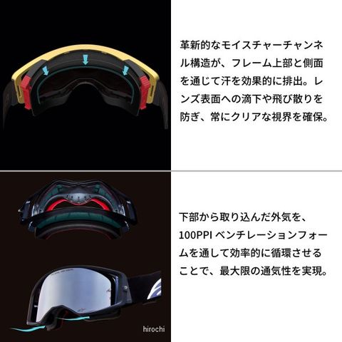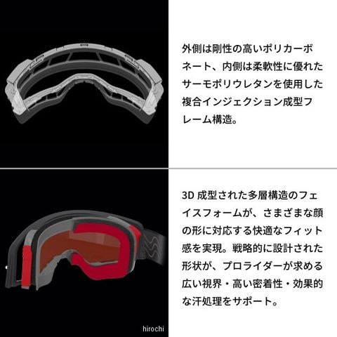 モトクロスおよびスーパークロスのトップレースにおいて開発・実証。 快適性、視認性、汗処理性能を高次元で融合したハイパフォーマンスモデル。本モデルには、レンズ、フィルム2巻、フィルムバイザー、ワイドヴィジョンロールオフシステムが付属。左右160mm以上のワイドな視野は業界最高水準。