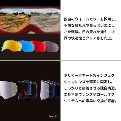 モトクロスおよびスーパークロスのトップレースにおいて開発・実証。 快適性、視認性、汗処理性能を高次元で融合したハイパフォーマンスモデル。過酷なオフロード環境においても安定した視界を実現。