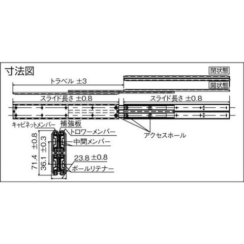 ・重荷重用・3メンバーフルトラベルタイプ・ドロワーメンバーの脱着不可能・取付ねじ:バインド(M4)またはトラス小ねじ(M4)・ストップタイプ