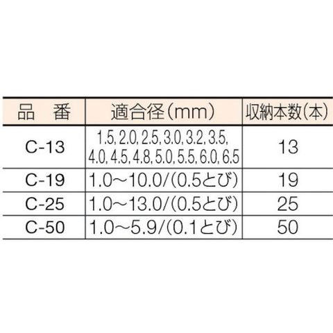 ・幅(mm):106・奥行(mm):159・高さ(mm):52・収納本数(本):50・適合径(mm):1.0~5.9/0.1とび