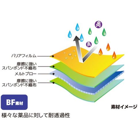 ・無機化学薬品に対して優れた耐透過性があります。・感染症など危険性のある液体に対して高いバリア性があります。