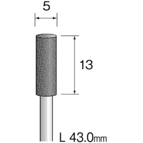 ・粒度(#):60・外径(mm):5・幅(mm):13・軸径(mm):3.0・最高使用回転数(rpm):70000・全長(mm):43.0・粒度:A/WA#80