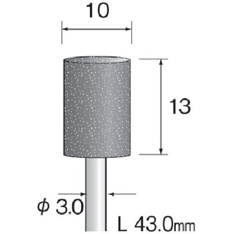 ・粒度(#):60・外径(mm):10・幅(mm):13・軸径(mm):3.0・最高使用回転数(rpm):45000・全長(mm):43.0・粒度:A/WA#60