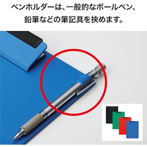 ・本体に再生ABS樹脂を採用しています。・ボードは厚みがあって衝撃に強く、耐久性に優れています。・ペンホルダーは、ボールペン、鉛筆など筆記用具を挟むことができます。