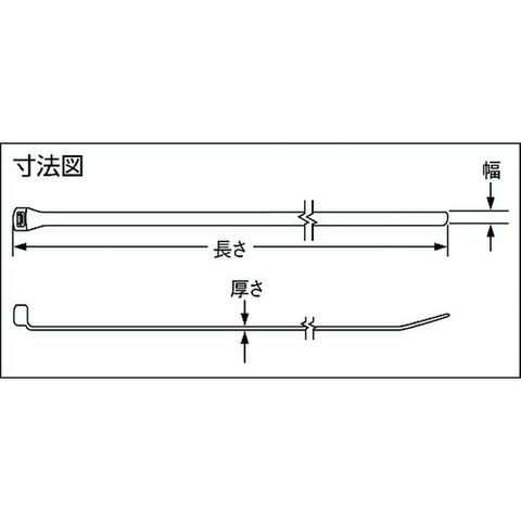 ・色:黒・幅(mm):4.8・長さ(mm):193・厚さ(mm):1.1・最大結束径(mm):51・引張強度(N):222・最小結束径(mm):4.1・適合タイ:なし・長さ(m):193・適合ストラップ:なし