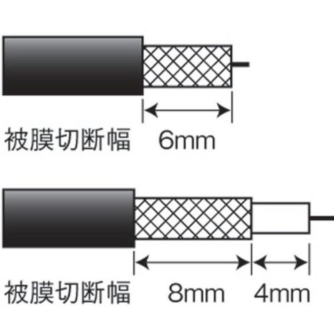 ・気温の変化などで伸縮する外皮に合わせて刃の微調整ができます。・手前の刃が外皮のみ、先の刃が芯線まで、一度の作業で同軸ケーブルをストリップできます。・適合ケーブルは、3C、4C、5Cです。