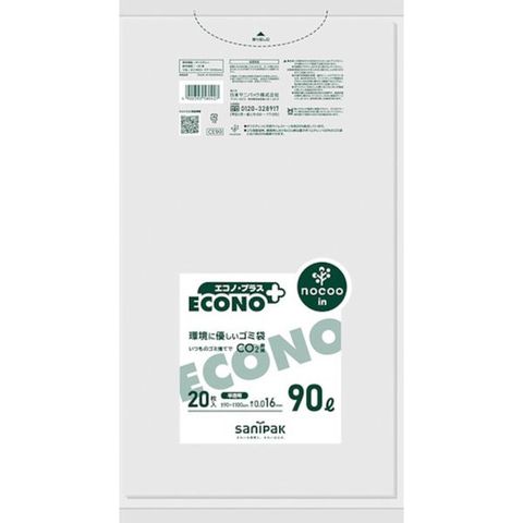 日本サニパック(株) サニパック エコノプラスノクー90L20枚薄手タイプ