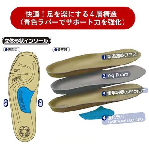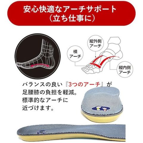 ・立ち仕事や安全靴の負担軽減と衝撃吸収に(標準アーチ、カカト痛)。・衝撃吸収、抗菌、通気、消臭に。