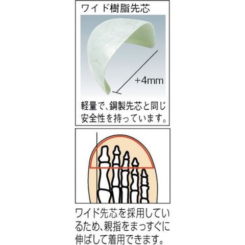 ・冬の低温・乾燥時期でも安定した静電気除去性能を発揮します。・靴底から静電気を逃がし、スパークの発生を防止します。・親指をまっすぐに伸ばして、快適に着用できるワイド樹脂先芯を使用しています。・クッション性と耐久性に優れたウレタン2層底です。