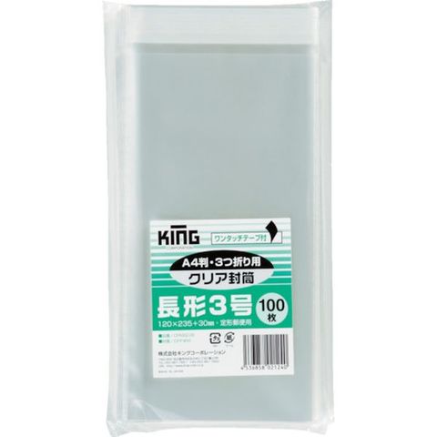 (株)キングコーポレーション キングコーポ 長3クリア封筒テープ付き100枚