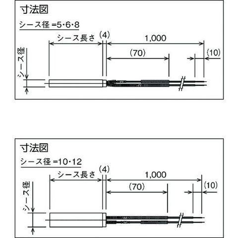 ・シース径(mm):8・シース長さ(mm):50・電源(V):100・容量(kW):0.170・容量(W):170・用途:工場設備の熱源や装置の組み込みに。・電力密度(W/[[CM3]]):20