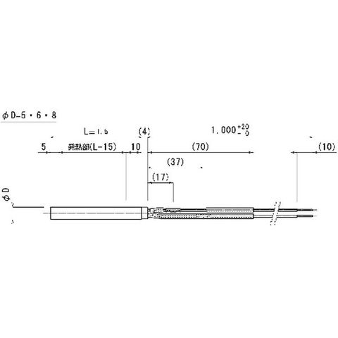 ・シース径(mm):5・シース長さ(mm):50・電源(V):200・容量(kW):0.080・容量(W):80・用途:工場設備の熱源や装置の組み込みに。・電力密度(W/[[CM3]]):15