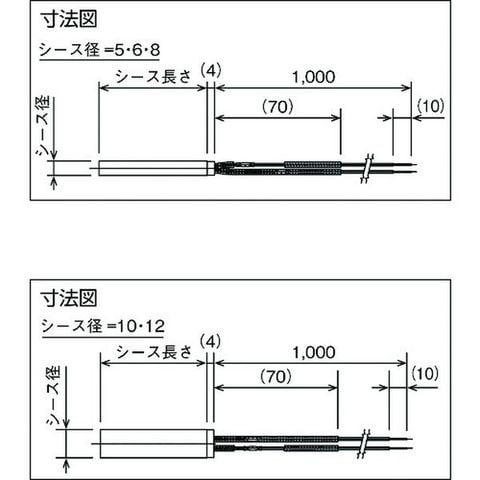 ・シース径(mm):8・シース長さ(mm):50・電源(V):200・容量(kW):0.170・容量(W):170・用途:工場設備の熱源や装置の組み込みに。・電力密度(W/[[CM3]]):20