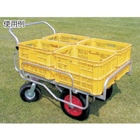 ・組立式・固定2輪(13×3Tエアー入りタイヤ)、自在タイヤ2輪(350-4Tエアー入りタイヤ)・荷台有効寸法(mm):700~96・ホイールベース 560mm・積載重量(kg):100