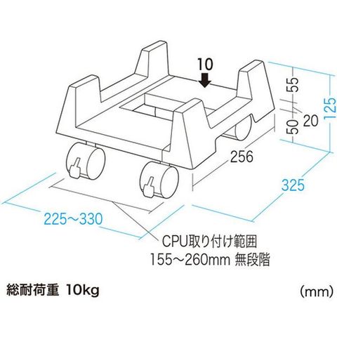 ・パソコンの移動を簡単に行えます。・キャスター付でCPUのメンテナンスに便利です。・幅155mm~260mmの本体に合わせることができます。・キャスター付でメンテナンスが容易です。・組立簡単です。・背面部のメンテナンスを頻繁に行う場合最適です。
