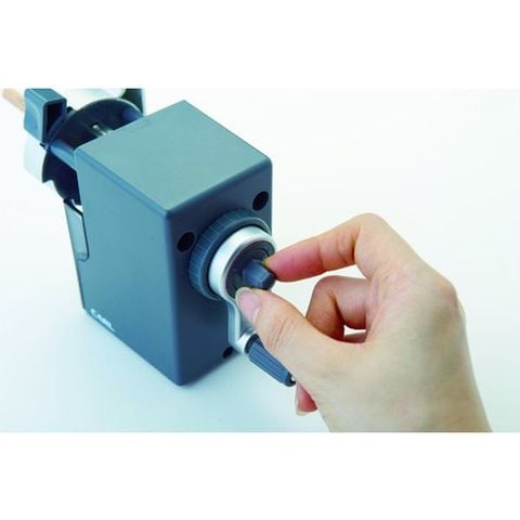 ・デスクの上でも場所を取らないコンパクトサイズです。・芯の太さを調節できる2段階芯調節機能付きで、用途に応じて0.5mm、0.9mm(目安)を選べます。・削る鉛筆の表面に傷がつかないようにゴム製チャックを使用しています。・鉛筆が削りあがると、ハンドルが軽くなるムダ削り防止機能付です。