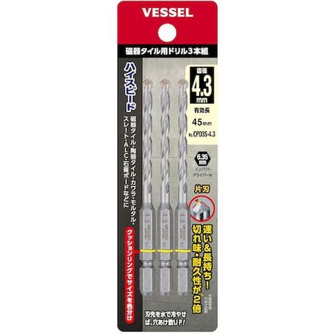 CPD3S4.3 (株)ベッセル ベッセル CPD3S-4.3 磁器タイル用ドリル3本組