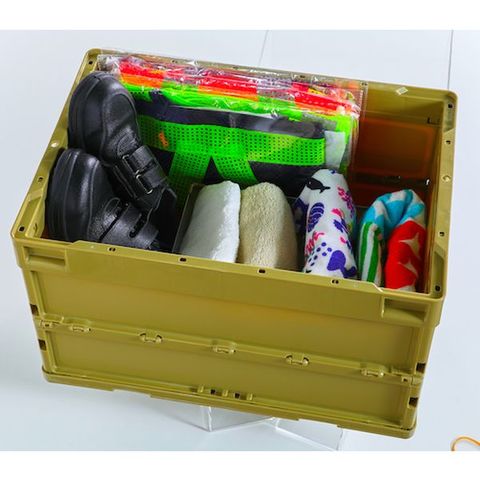 ・シボ加工を設けているので、ラベルを貼ることができ、ラベルののりを残すことなくはがせます。・使わない時は折りたたむことにより、輸送運賃・保管スペースを大幅に削減することができます。・組み立て時も、折りたたみ時にも積み重ねができ荷崩れの心配がありません。・キャンプなどアウトドアのシーンにも合うコンテナです。
