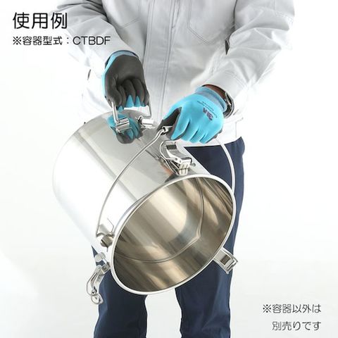 ・容器本体…SUS304・蓋【MF】…SUS304・ツル・取っ手…SUS304・キャッチクリップ…SUS304・表面処理: 内外面バフ研磨・使用条件: 大気圧(加減圧不可)・フタ付・パッキン付