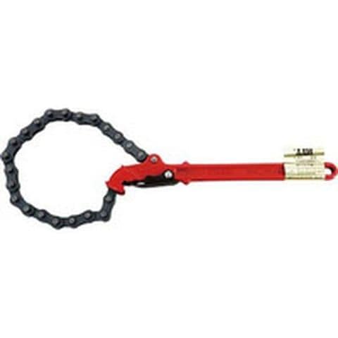 ・作業中の脱落を防止する特許チェーンストッパー付安全チェーンレンチです。・本体は特殊鋼の鍛造品で強く、歯先は高周波焼き入れを施し硬くヘタらず完全に機能を発揮します。・外れ止めの効果で連続繰り返し作業が安心してできます。・パイプレンチの使えない場所でもチェーンが入れば連続作業ができます。