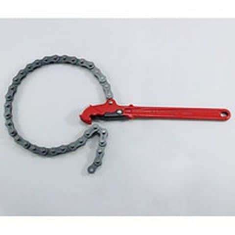 ・作業中の脱落を防止する特許チェーンストッパー付安全チェーンレンチです。・本体は特殊鋼の鍛造品で強く、歯先は高周波焼き入れを施し硬くヘタらず完全に機能を発揮します。・外れ止めの効果で連続繰り返し作業が安心してできます。・パイプレンチの使えない場所でもチェーンが入れば連続作業ができます。
