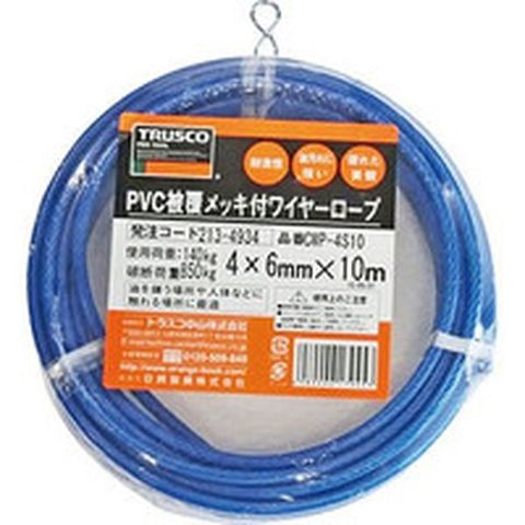 CWP4S10 トラスコ中山(株) TRUSCO メッキ付ワイヤーロープ PVC被覆タイプ Φ4(6)mmX10m