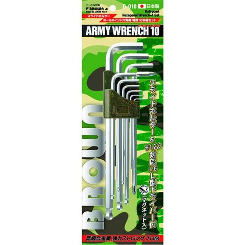 D010 平井工具(株) BROWN アーミレンチ10(ロングボールポイント六角レンチ特殊10本組セット)