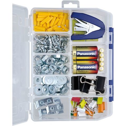 ・コンパクトで大容量の深型パーツケースです。・部品の収納に最適です。可変仕切板付きで収納物に合わせてカスタマイズが可能です。・D-1200シリーズは、別売のバケットマウスBM-7000に収納可能です。