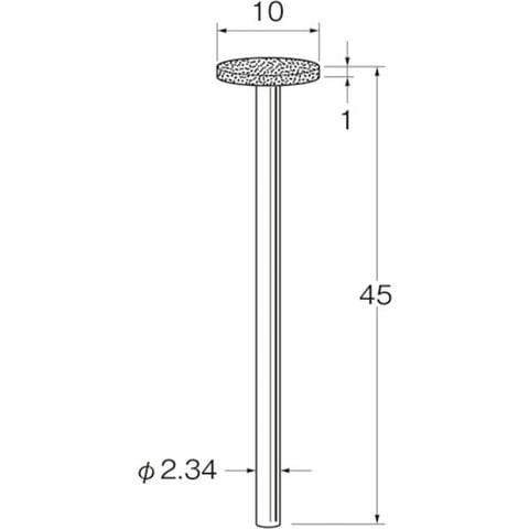 ・粒度(#):150・刃径(mm):10・刃長(mm):1・軸径(mm):2.34・全長(mm):45・最高使用回転数(rpm):60000