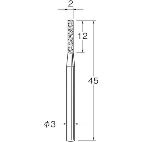 ・粒度(#):150・刃径(mm):2・軸径(mm):3・全長(mm):45・最高使用回転数(rpm):150000