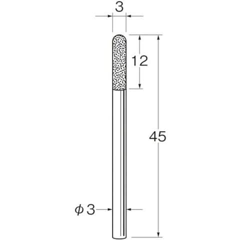 ・粒度(#):150・刃径(mm):3・軸径(mm):3・全長(mm):45・最高使用回転数(rpm):87000