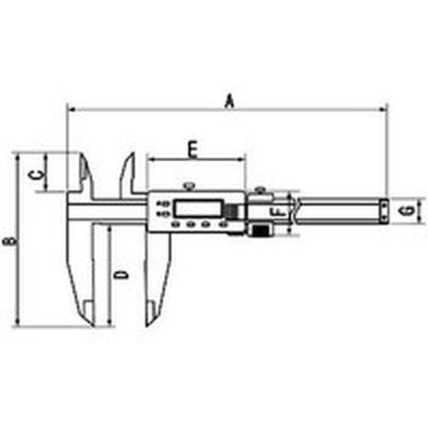 ・メーカーコード:00151053・測定範囲(mm):0-500・最大許容誤差(mm):±0.05・最小表示(mm):0.01・外側用ジョウ(mm):100・内側用ジョウ(mm):38・デプスバー:無・全長(mm):676・電源:コイン型リチウム電池(CR2032)×1個(付属)・電源(V):コイン型リチウム電池(CR2032)×1個(付属)